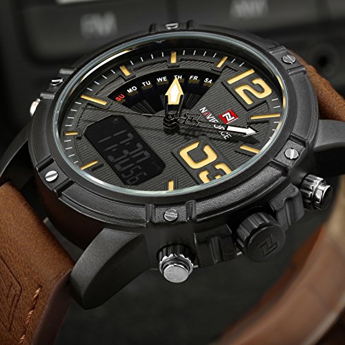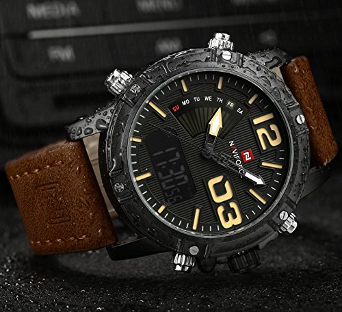 • Analog & Digital display. Shows time digital numbers, and analog pointer Dual display Sports Watch.