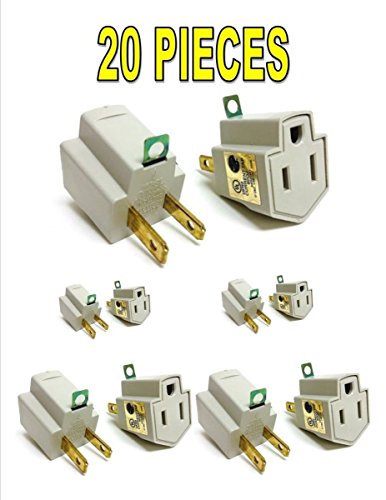 20 Pieces 3 Prong Plug to 2 Prong Outlet Electrical Ground AC Adapter UL Listed
