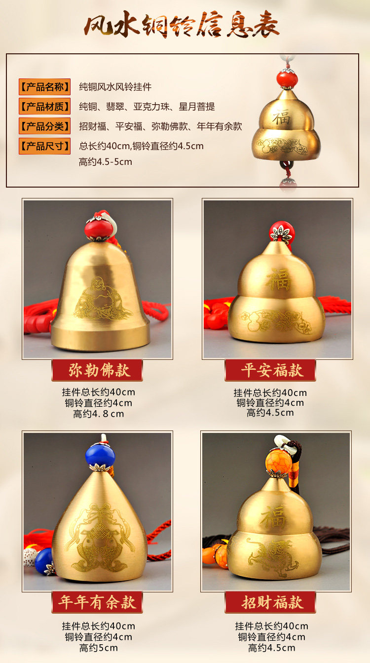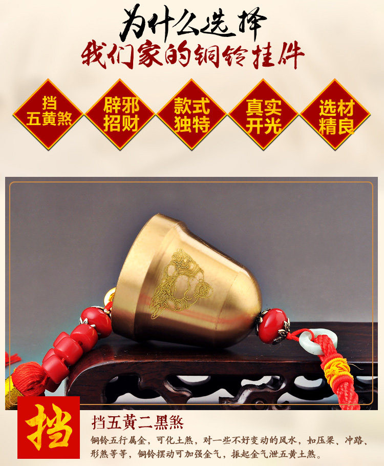 纯铜风铃铜铃铛挂件化五黄煞气风水镇宅挂饰门饰辟邪保平安