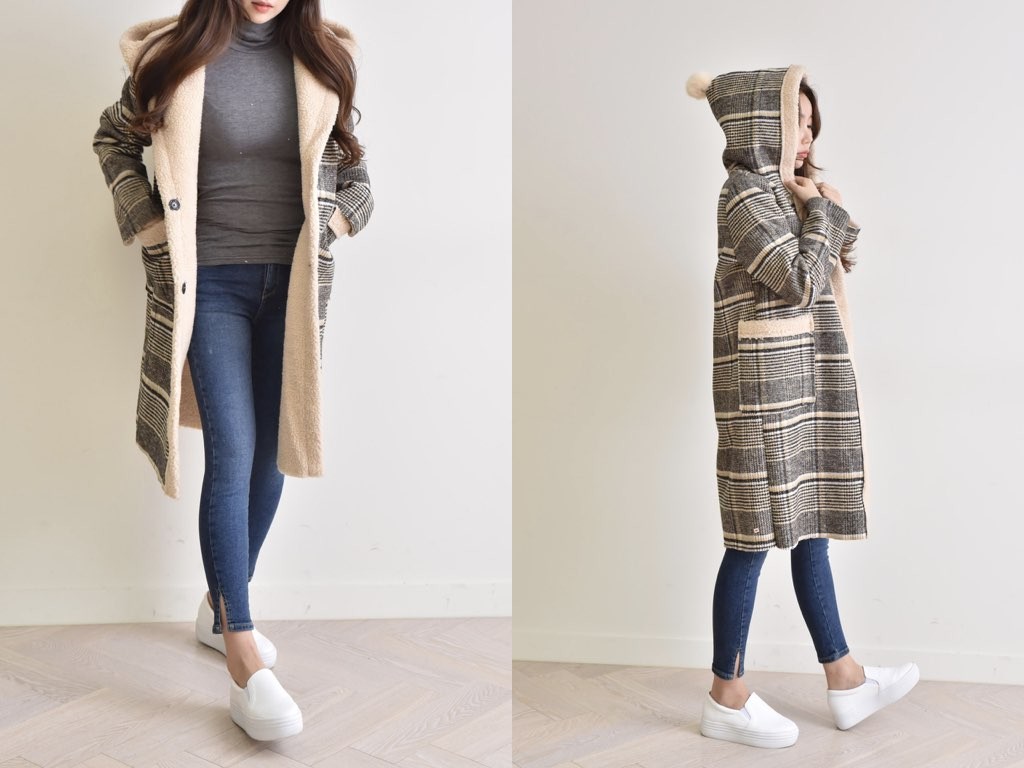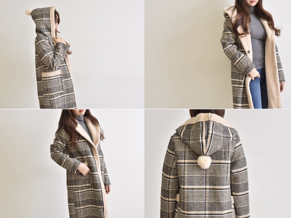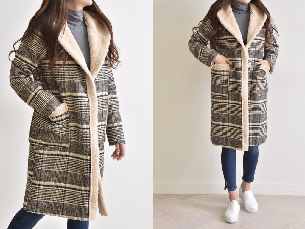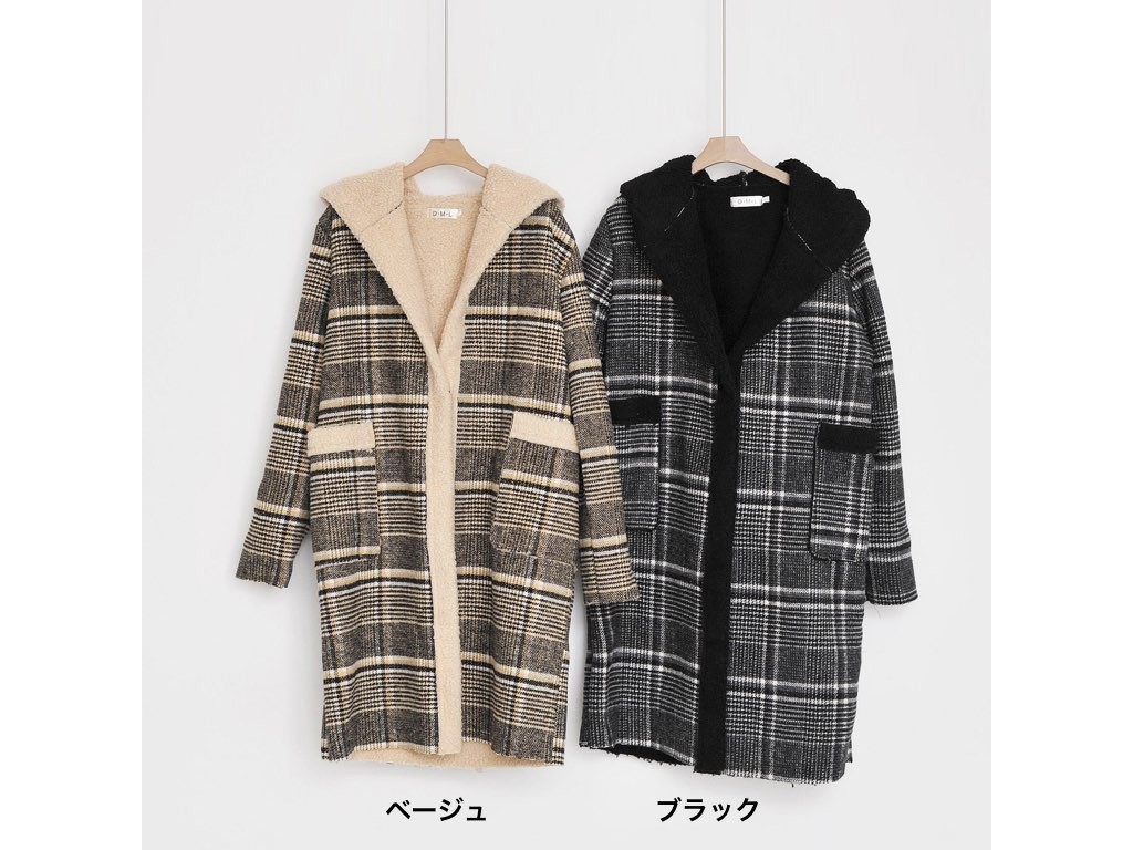 チェック柄のチェスターコートです。さらりと着流せる長め丈です。休日スタイルなどにも最適な大人カジュアルです。商品は、とても丁寧なつくりとなっています。1.基本情報色:2色展開(ベージュ/ブラック)サイズ:Free素材:ポリエステル100%製造国:Korea2.サイズ情報肩幅:42cm身幅(胸断面):53cm 腕の長さ:59cm 着丈(前):93cm (サイズは計る方法に応じて±2〜3cmの誤差があります。ご了承お願い致します)モデル着用サイズ:F※着用モデル(163cm、体重47kg、足のサイズ24.5cm)3.その他の情報厚み:厚い透け感:なし伸縮性:なし裏地:なし洗濯方法:ドライ(クリーニング)[注意事項]お取り寄せ商品は、海外より仕入れるため納品まで約10日前後いただきます。また店舗でも販売しており、在庫切れになる場合もございます。ご了承お願い致します。