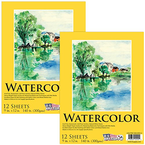 U.S. Art Supply 9" x 12" Premium Heavy-Weight Watercolor Painting Paper Pad, 60 Pound (300gsm), Pad of 12-Sheets (Pack of 2 Pads)