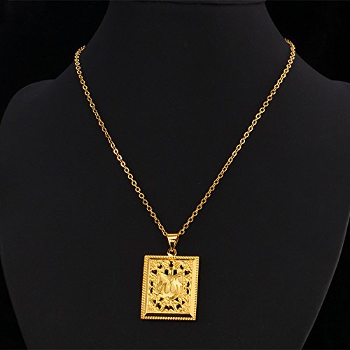 -. Feature : Hollow square pendant. / 20 Inches long rolo chain with 2 inches chain extender. / Pendant:1.3" x 1.6" (W*H) / Metal type:18K Gold Plated, 18k gold plated is method of depositing a thin layer of 18k gold onto the surface of copper. / Nickel Free. Package content: 1 pendant, 1 chain, U7 design gift box.