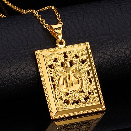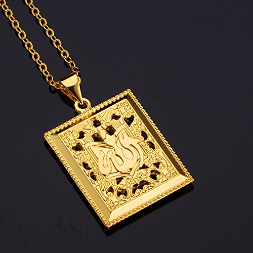 -. Title : Vintage Islamic Jewelry Middle Eatern Gold Plated Square Allah Pendant Necklace