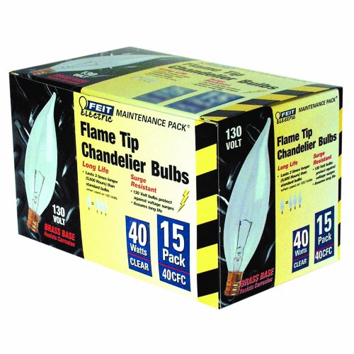 Feit Electric 40CFC/15-130 40-Watt Flame Tip Bulb with Chandelier Candelabra Base, Clear, 15 Pack