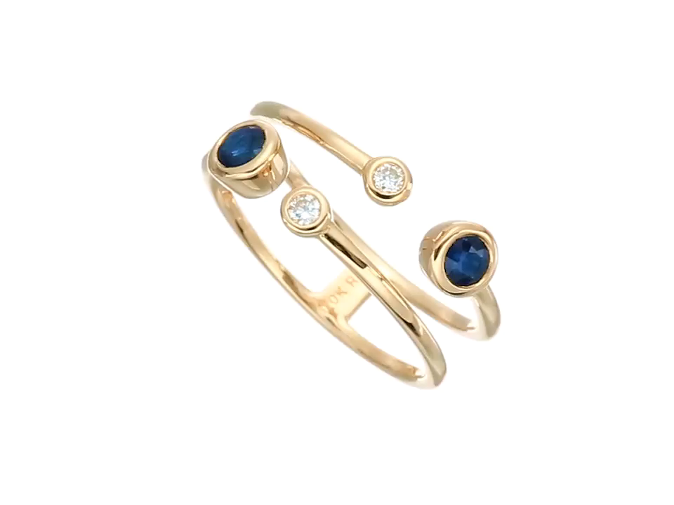 10k Yellow Gold Round Double Row Sapphire with Diamond Accent Ring, Size 7