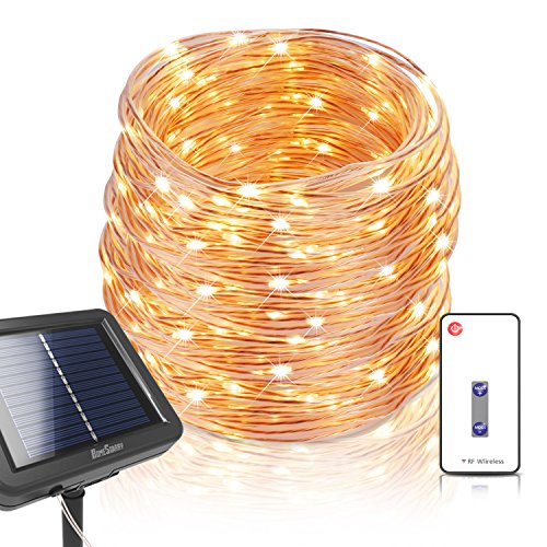 Homestarry Solar Fairy Lights with Remote, IP67 Waterproof Outdoor Solar String Lights, 200 LEDs 72ft 3-Strand Copper Wire Warm White Firefly Solar Lights, Weatherproof String Lights for Patio Garden