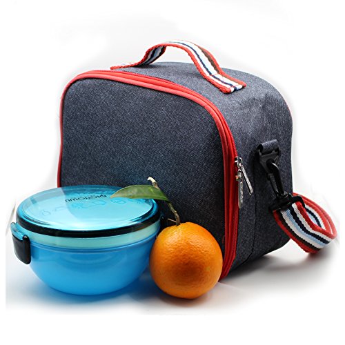 Easy to Carry:The lunch bag comes with a shoulder strap and has a carrying handle and a mesh cargo net for utensils or condiment packs.The shoulder strap is a great convenience to carry.