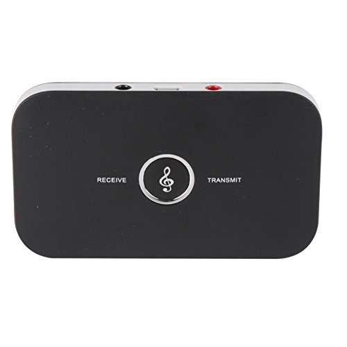 -. Feature : BLUETOOTH TRANSMITTER AND RECEIVER: Transmitter function transforms 3.5mm audio-out media devices into a Bluetooth device capable of streaming Bluetooth audio; Receiver lets non-Bluetooth devices like car ,CD players or home stereos receive high quality audio. / UPGRADED 2-IN-1: Bluetooth receiver 4.1 Bluetooth Transmitter 2.1 , low power consumption, intelligent compatible, Android, IOS system mobile phones and PAD, and all Bluetooth audio equipment. / AUTOMATIC MEMORY CONNECTION: Support automatic search for Bluetooth devices to realize connect, transmit wireless audio transmission. Support connect a mobile phone, easy connection,No Need download any APP and Drivers. / ANC NOISE REDUCTION & AEC ECHO CANCELLATION: Elimination of built-in AEC echo and ANC elimination circuit noise, offering you magnificent stereo sound and wonderful sound quality, built on an enhanced signal transmitting circuit, quick connection more stable sound / STRONG COMPATIBILITY: Compatible with all Bluetooth-enable Audio Devices, and Stereo System with 3.5mm port. ( Bluetooth receiving for: speakers, headphones and more; Bluetooth transmission for: MP3, CD / DVD players, e-readers, smartphone, TVs and more).