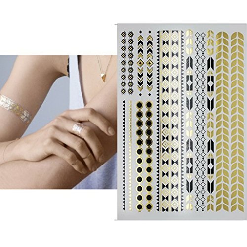 -. Title : Henna Metallic Flash Temporary Tattoo (6 Sheets) Gold Silver and Black Jewelry Tattoos