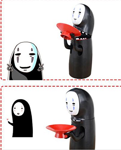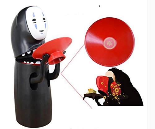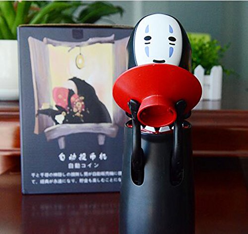 Studio : Toy Banks Publisher : Toy Banks Binding : Toy Product Description Face Bank Spirited Away No Face Man Coin Bank Automatic Eat Coin Piggy Bank. Mechanical piggy steels and saves your money. Size: 22 * 7.3 cm / 8.66 * 2.87inch, Material: ABS Just put the coin in the bowl and save the money to swallow the money. Best gift for kids,can als be used as an ornament for home, desk table or child's room. when you put the coin on the plate,it will sing a song,hiccups and eating the coins 0