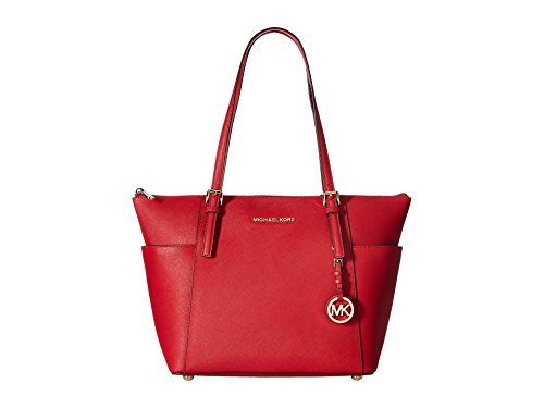 -. Title : Michael Kors Jet Set E/W Top-Zip Tote, Silver Hardware (Bright Red)