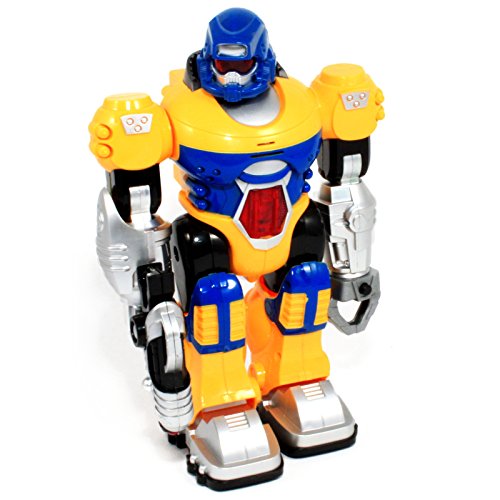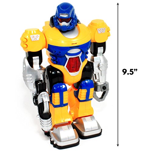 -. Feature : Robot Walks, Talks, Moves Arms And has Flashing Bright Lights, All This Is Packaged Into This Awesome Robot Toy. / Robot Toy Dimensions: Robot Length: 6" Inches, Robot Height: 11" Inches, Robot Width: 5" Inches / This Robot Toy Requires (3) AA Batteries / Approx. Height: 10"