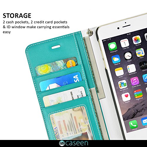 caseen Apple iPhone 6 / 6S Wallet Case (Two-Tone Teal Turquoise Mint / White) w/ ID, Credit Card, and Cash Pockets - TERRA Series