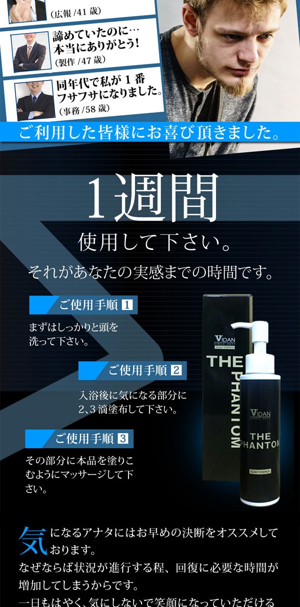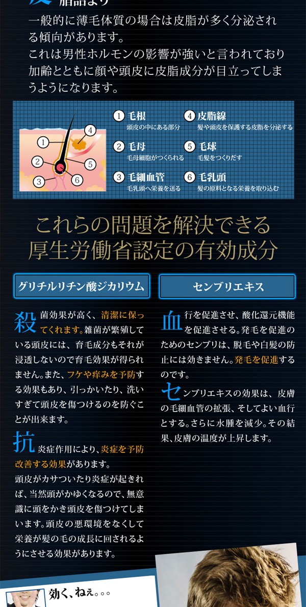 (その他の成分)ゲンチアナエキス、ジオウエキス、ビワ葉エキス、シラカバエキス、BG、