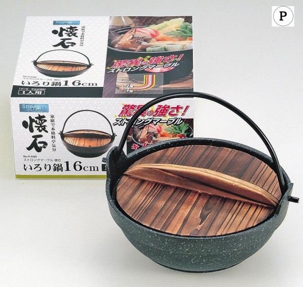 家庭で本格料亭気分が楽しめます。マーブル加工がされているので、キズや汚れがつきにくいです。 製造国:韓国 素材・材質:鍋:アルミニウム合金(ふっ素樹脂塗膜加工)蓋:天然木つる:鉄(エポキシ樹脂塗装) 商品サイズ:幅190×奥行180×高さ90mm 重量:575g ※サプライヤー直送品 ご注文後3~4営業日後の出荷となります【商品名】ストロングマーブル懐石 いろり鍋16cm H-5365