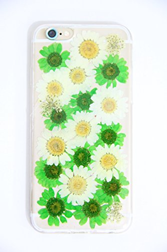 Sunday Gallery Handmade Floral Real Pressed Dried Flowers TPU Gel Rubber Skin Silicone Protective Plastic Soft Phone Case Cover For iPhone 6 6s 4.7inch (Design #6)