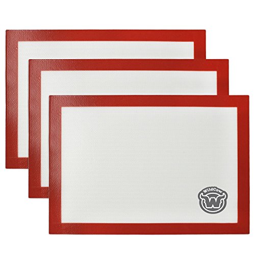 WildCow Silicone Baking Mats - Set of 3 Half Sheet (Large & Thick 16.5 x 11.6 inches) Nonstick Pastry Liners for Bake Pans (Heat Resistant)