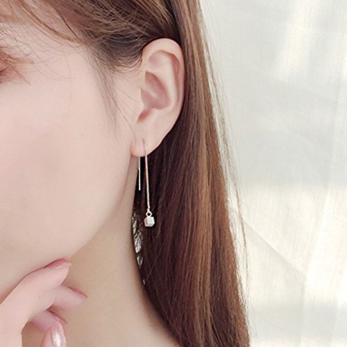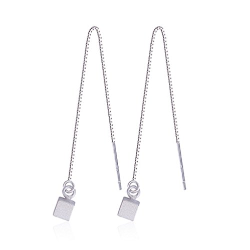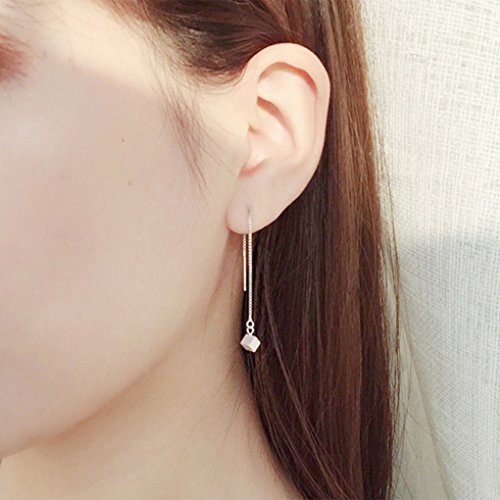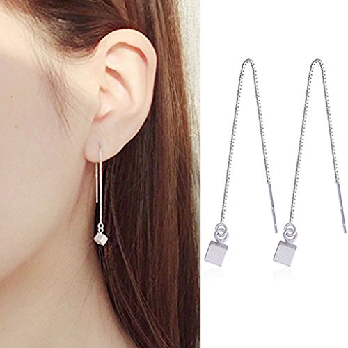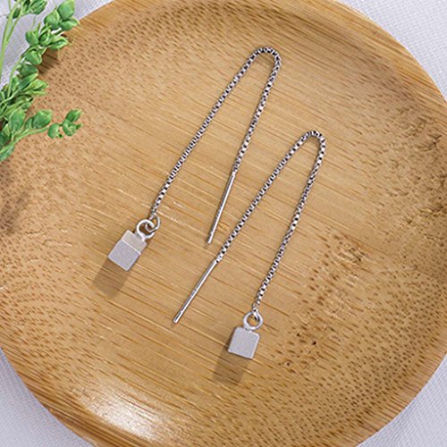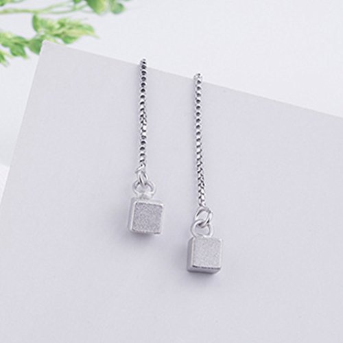 Leiothrix Hypoallergenic Geometrical Cube Ear Line Dangle Earrings Silver Jewelry Ear Line for Women and Girls