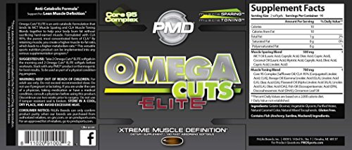 -. Binding : Health and Beauty -. Brand : PMD -. EAN : 0811020910022 -. Feature : Omega Cuts® Is An Anti-Catabolic Formulation That Binds Its Mct Muscle Sparing And Cla Muscle Toning Blends Together To Help Your Body Burn Fat Without Sacrificing Hard-Earned Muscle. Formulated With Cla 95%, The Purest, Most Concentrated Form Of Cla.By Retaining Muscle, You Create A Higher Muscle-To-Fat Ratio, Which Leads To A Higher Metabolism Rate.This Versatile Sports Nutrition Product Can Be Implemented Into Any Serious Supplementation Program. -. Label : PMD -. Manufacturer : PMD -. MPN : 384594 -. PackageQuantity : 1 -. PartNumber : 384594 -. ProductGroup : Health and Beauty -. ProductTypeName : HEALTH_PERSONAL_CARE -. Publisher : PMD -. Size : 90 servings -. Studio : PMD -. Title : Omega Cuts Elite 180 Capsules -. UPC : 811020910022