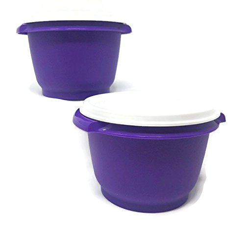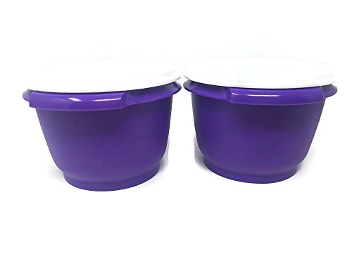 Tupperware Servalier Bowls Set of 2 in Purple w/Sunburst White Lids