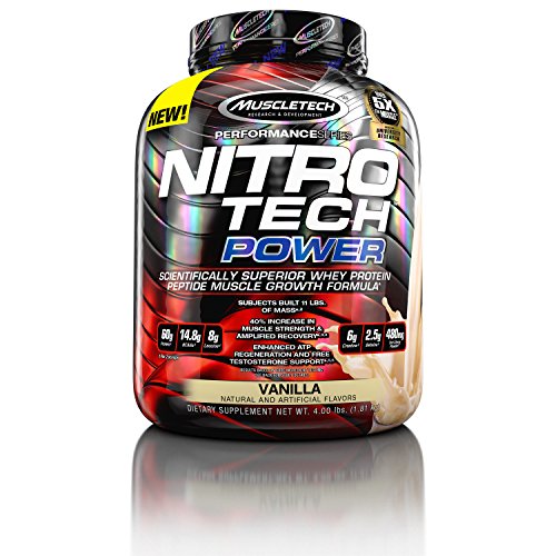 ReleaseDate : 2015-11-24 Studio : MuscleTech Publisher : MuscleTech Binding : Health and Beauty Product Description NitroTech Power contains several key ingredients shown in multiple clinical studies to help you pack on more muscle than ever! NitroTech Power starts with a powerful blend of premium 100% whey protein for high levels of essential branched chain amino acids (BCAAs). MuscleTech researchers also loaded ach two-scoop serving of this incredible new protein with clinical doses of creatine monohydrate, betaine anhydrous, boron citrate and tart cherry ? creating the ultimate muscle-amplifying whey protein! 0