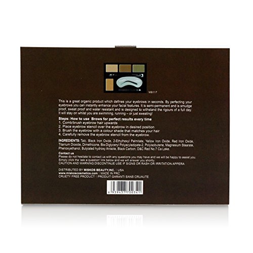 - All-in-One Set: MISKOS 4 Colors Eye Brow Contour Kit, Easy to Mix the Perfect Natural Shade for You with 4 Colors Cream Palette, 4 colors is blendable, you could enjoy yourself and make the best eyebrow makeup. We have the double ended brush inside, portable to arrange it. You could also use the tweezer to describe your shape. The model is super suitable for the beginner. One pcs Eyebrow palette, Enjoy all the whole process.