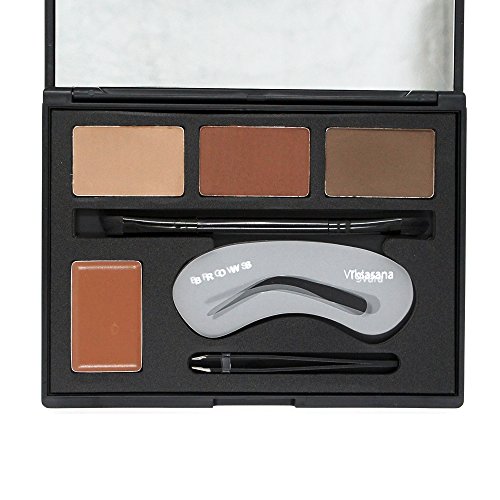 - Package: A Double-Ended Eyebrow Brush, A Tweezer, 3 pc Eyebrow Stencils Models, and 4 Colors Creal Eye Brow Pans.