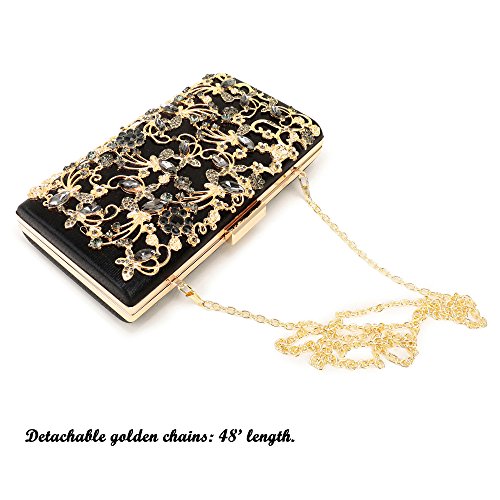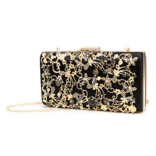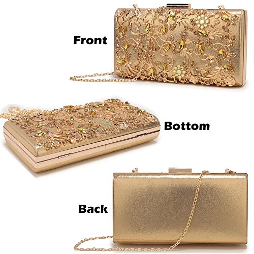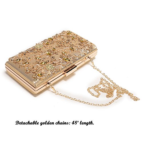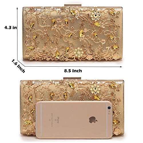 -. Feature : Superior metal frame construction with shiny and fashion rhinestone outside. / Dimensions: 8.5"L x 1.6"W x 4.3"H,weight is 1.2 pounds,chains length:45.6" / This gorgeous bag is five colors with hard case and round crystal diamante detail,compact but elegant.Can hold iphone 6s plus,cash,card,keys,mirror and makeups. / The bag can be clutched by hands or hung on shoulders with the detachable chain. / Unique design evening bags are perfect for night out, date, cocktail party, family reunion, prom, banquet and so on .