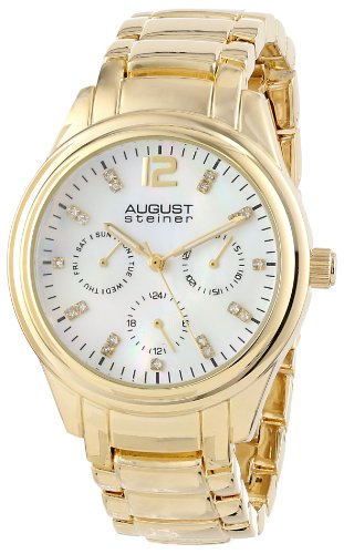 -. Title : August Steiner Women's AS8076YG Quartz Multifunction Crystal Mother-of-Pearl Gold-tone Bracelet Watch