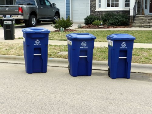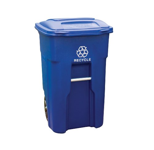 Toter 025564-R1BLU Residential Heavy Duty 2-Wheeled Recycling Can with Attached Lid, 64-Gallon, Blue