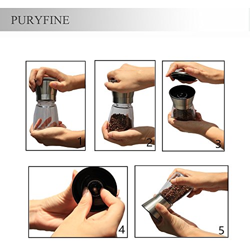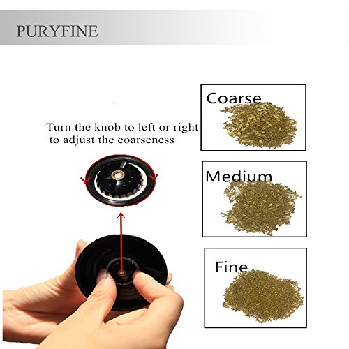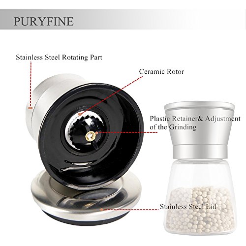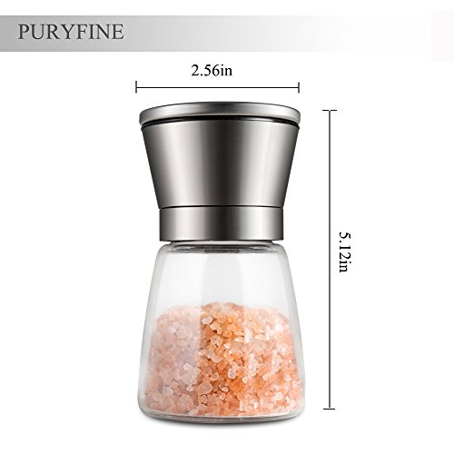 PURYFINE Premium Brushed Stainless Steel Salt and Pepper Grinder (Set of 2), Salt and Pepper Mill Set with Special Thickening Glass Body and 5 Grade Adjustable Ceramic Rotor (6Oz)