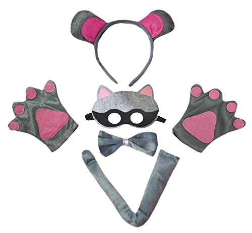 -. Title : Petitebella Raccoon Headband Mask Bowtie Tail Gloves 5pc Costume for Child