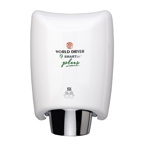 World Dryer K-974P SMARTdri Plus High Efficiency Intelligent Automatic Hand Dryer with Aluminum White Cover, Single Port Nozzle, 110-120V