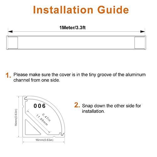 - Package includes: 5x 1m/3.3ft per segment with cover(x5), end caps(x10) and mounting clips(x10);For additional end caps please search B01GP873C8; Extra mounting clips please search B01GP871N4 on Amazon