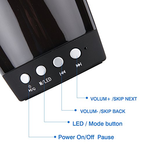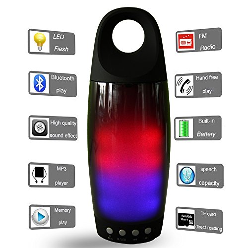 Built-in 1800 mAh Li-ion rechargeable battery up to 10 hours of playtime. Built-in HD microphone for hands-free speaker phone calling. The Bluetooth speaker is also used for the flashlights when you are in the dark, which gives your life lights and wonderful music to company.
