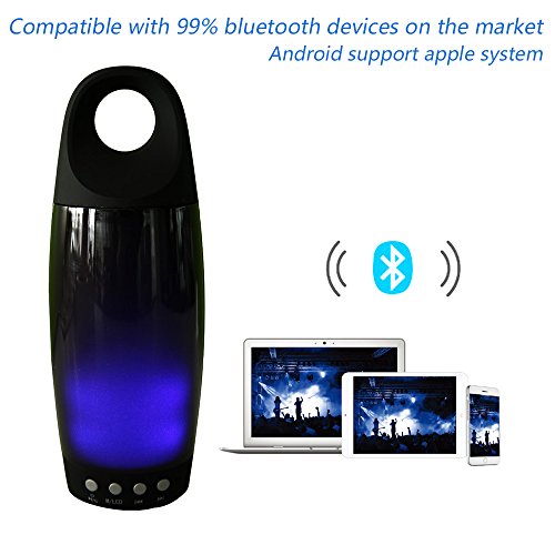 Description: The Bluetooth speakers is Compatible with most Bluetooth-enabled device (A2DP), and it is used the high quality Anti-broken voice chip, Ultra-low power consumption, Super low frequency. The speaker also features a noise and echo cancelling speakerphone for crystal clear calls. Because of the small footprint, it fits right inside your bicycle water bottle cage. Bring your music to life with glowing and LED flash visuals and transform wherever you are into a party. It is easy to pair and carry for travelling and outdoor sports. Support Bluetooth profiles: HFP, HSP, A2DP and AVRCP. MP3, WMA, WAV, APE and FLAC All iPhones, iPads and iPod Touch,Android smartphones , HTC, Samsung , Galaxy, Blackberry smartphones.