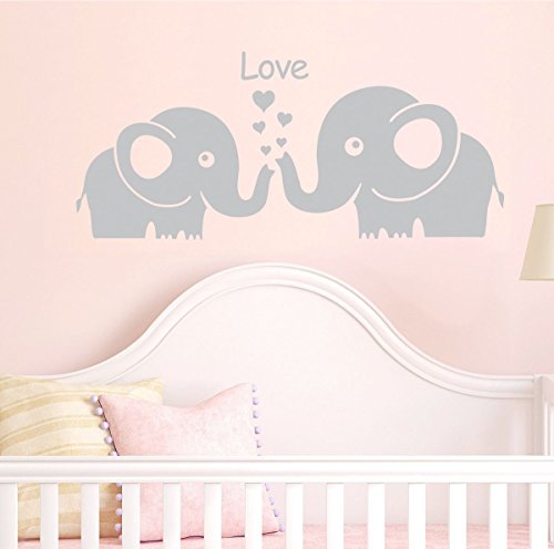 2 Cute Elephant Family Wall Decals Wall Stickers for Baby Nursery Bedroom Decoration (Grey)