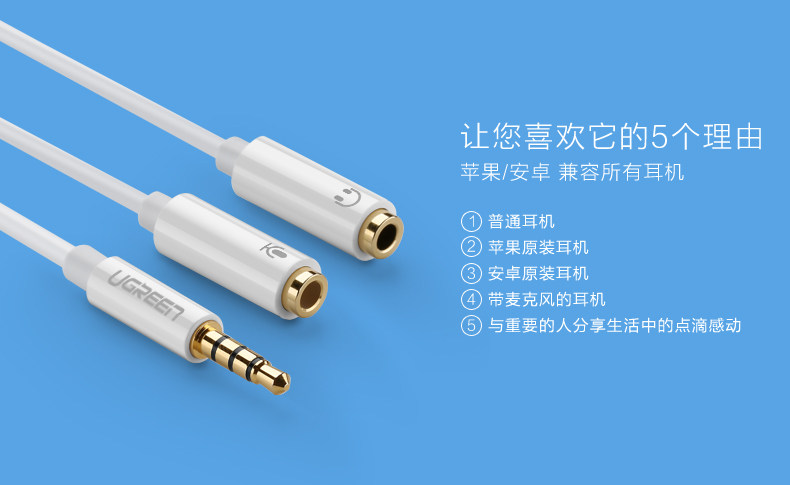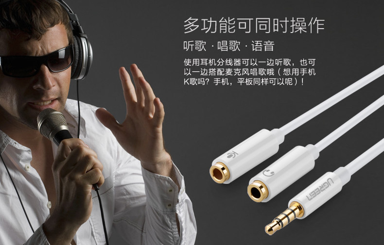 支持麦克风 单孔设备用 电脑手机k歌 一分二