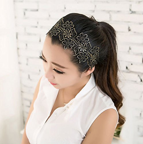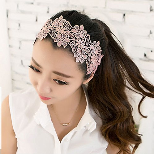 Elife Pack of 3-Black, Pink, Beige Lady Women Girls Elegent Lace Elastic Hair Head Band Hoop Accessory Tie Hairbands Headbands