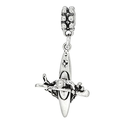 -. Title : Sterling Silver Three Dimensional Kayaker in Kayak Dangle Bead Charm