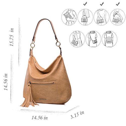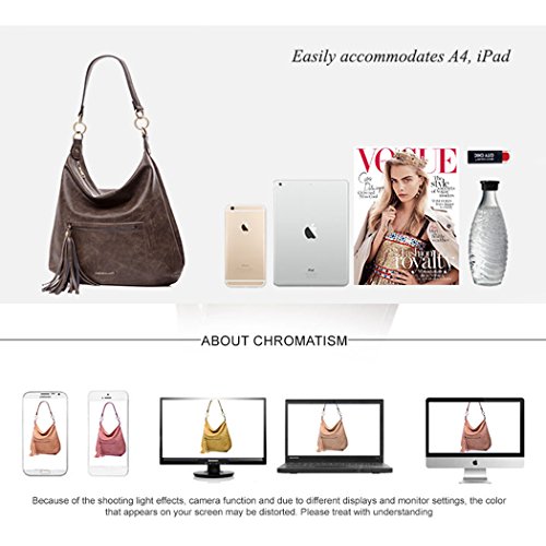 -. Feature : ✦Main Material: PU leather, Lining material: Cotton. High quality of hardware. / ▶DIMENSION: 14.17"(L)*3.94"(W)*13.00"(H) Handle height:15.7" / DESIGN: Fashion messenger bag with tassels decoration,double metal rings design , A short shoulder/tote strap. / ▶POCKETS: Top zipper closure. Interior: 1 zipper pocket and 1 slit pocket for smart phone. Big capacity enough for A4, IPAD or Mini laptop. Exterior:2 zipper pocket in front and back side / ▶CLASSIC SYTLE: Reliable quality, ideal for work, school, party, dating, shopping or daily use. Carry as a handbag, shoulder bag or tote bage .Awesome gift.