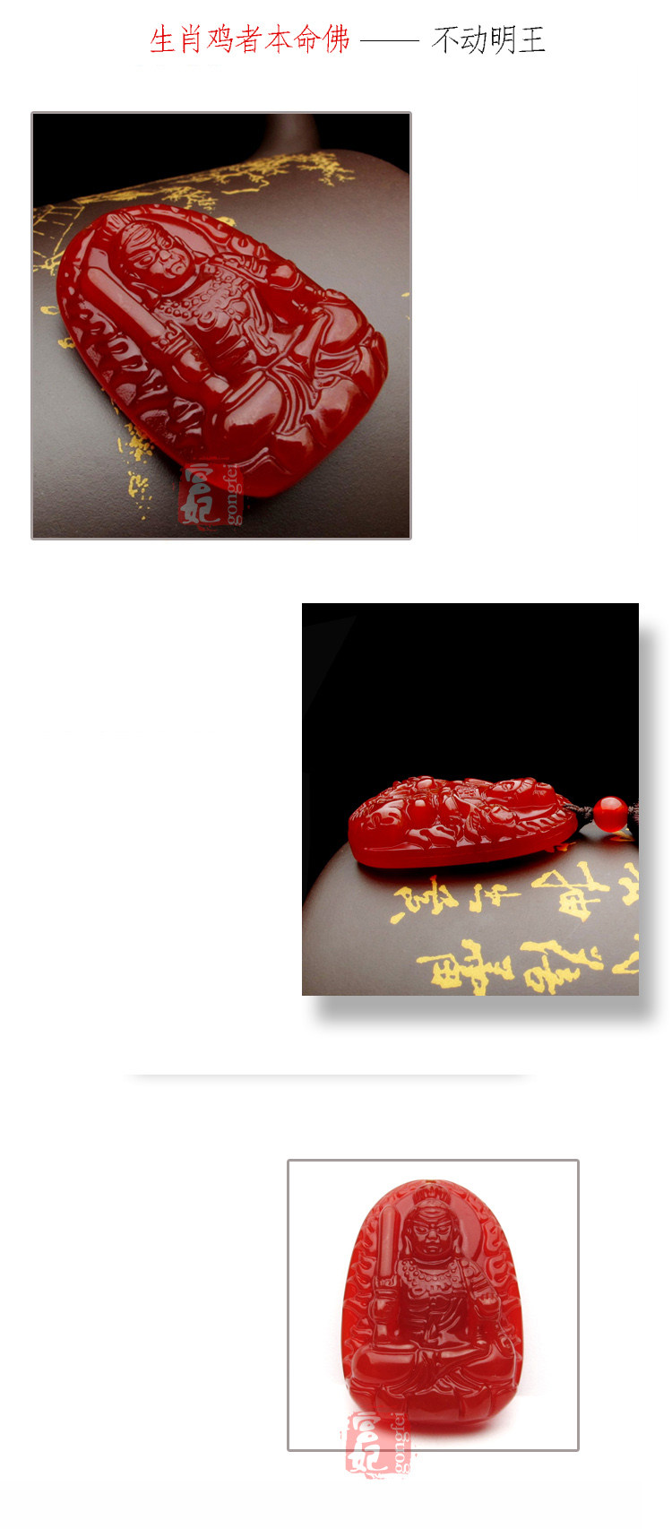 【商品名称】开光红玛瑙曼唯肖鸡佛谛坠生肖属鸡男女式不动明王不动尊菩萨吊坠
