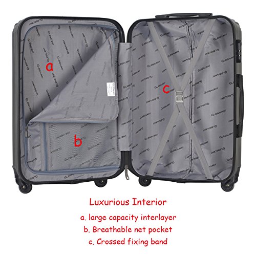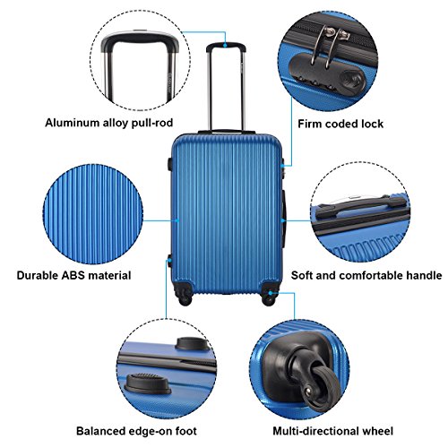 Feature Fashion and professional design, High end, elegant posh Durable ABS shell, hard-wearing, light-weight, water-proof, flexible and absorbs impact when under stress Comfortable and durable double telescopic handle, labor saving Suitcase set features one 28" suitcase for consignment, one 24" suitcase for checking in and one 20" suitcase for carrying onto the plane Multi-directional mute wheels, wear resistant, 360 degrees rotating moving Main compartment with high capacity Interior features crossed fixing band and net pocket Easy to pull seal and open, 3-digit combination lock ensures security while traveling Daily use and storage