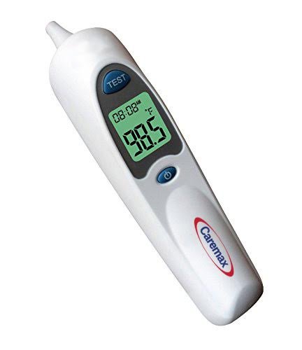 -. Feature : INFRARED DIGITAL Infrared EAR Thermometer by Caremax is specially designed to take the Human Body Temperature from ear with clinical accuracy quickly and easily. 3 IN 1 Measuring Modes: ear mode (measures the body temperature), object surface (actual surface temperature of an object), and room temperature (the temperature of your surroundings). NOTE: only ear mode is for measuring body temperature. Object mode is NOT. / HIGHLY ACCURATE with measuring range: 28.0℃~43.0℃(82.4℉~109.4℉) in Ear Mode; Built-in Fever Alarm NOTE: The ear canal must be parallel with the infrared light to get a proper reading for ear mode. Some people need to tug the ear down and have the thermometer at a 90-degree angle to get an accurate reading. / QUICK and SIMPLE temperature taking from ear in seconds; Large Display for easy-to-read in results. The memory saves the last 10 temperature measurements with the Real Time setup for result history tracking. Note: When changing modes, press and hold the Power and TEST button simultaneously. You will see the icon change from EAR to an AIR icon and vice versa so you know which mode you are using. Press the Test button to take the reading. / SAFE and HYGIENIC: Probe Cover Automatic Detection; 15 Probe Covers and 2XAAA Battery included; C/F Switchable; Auto Shut-OFF to conserve energy; Low Battery Indicator / PROFESSIONAL MEDICAL EQUIPMENT - Trusted by Pediatricians and Medical Professionals, this Caremax thermometer is the CLINICALLY Tested and SECURE solution for All Ages.