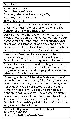 -. Title : SPF 30 VITAMIN C DAY CREAM from Sublime Beauty, 1.7 oz. Protect Skin from Sun Damage + Repair with Antioxidants. Includes Aloe, Vitamins A and E. 100% Customer Satisfaction Guarantee.