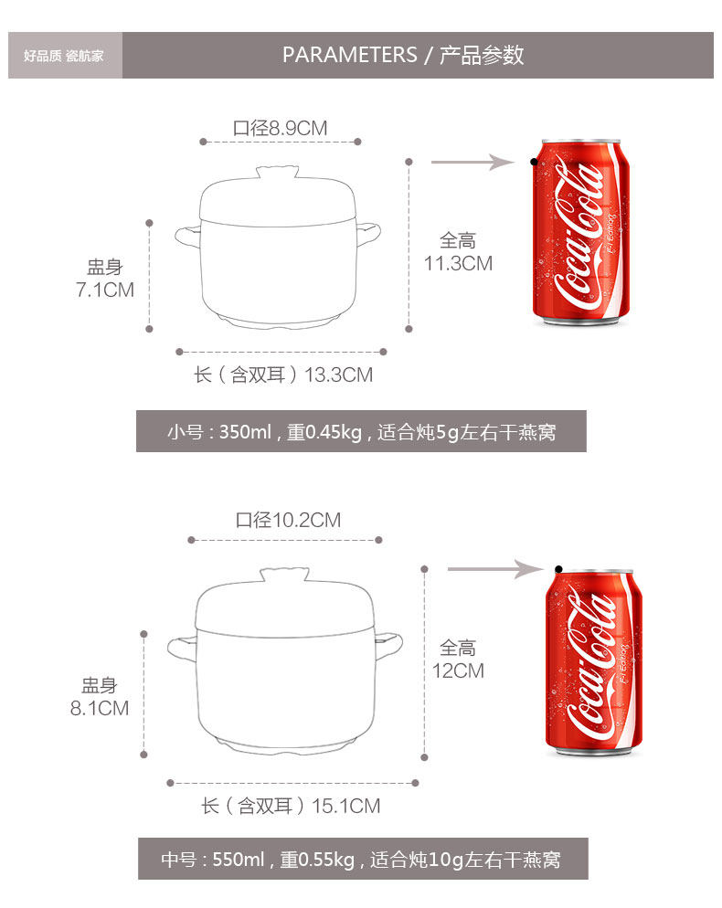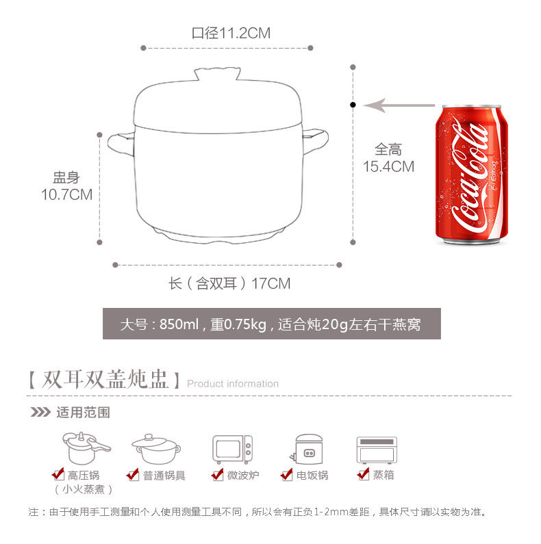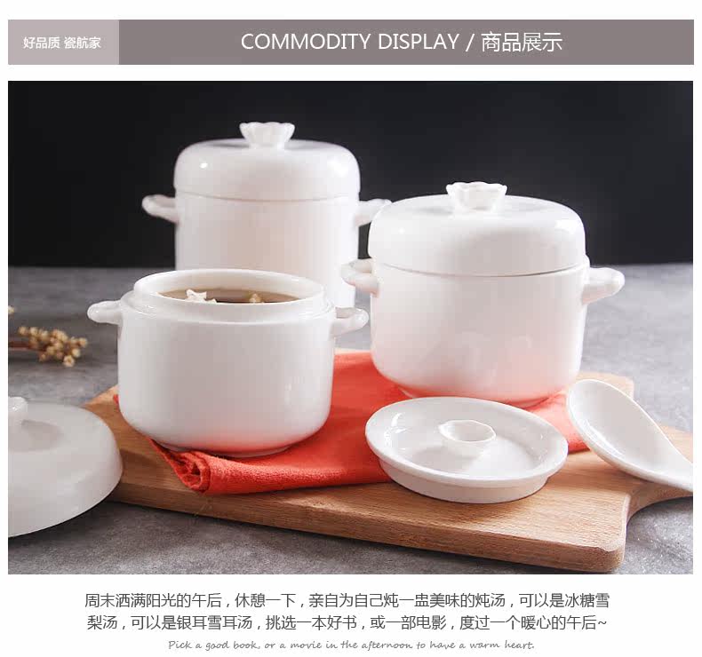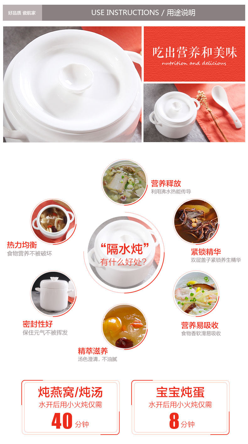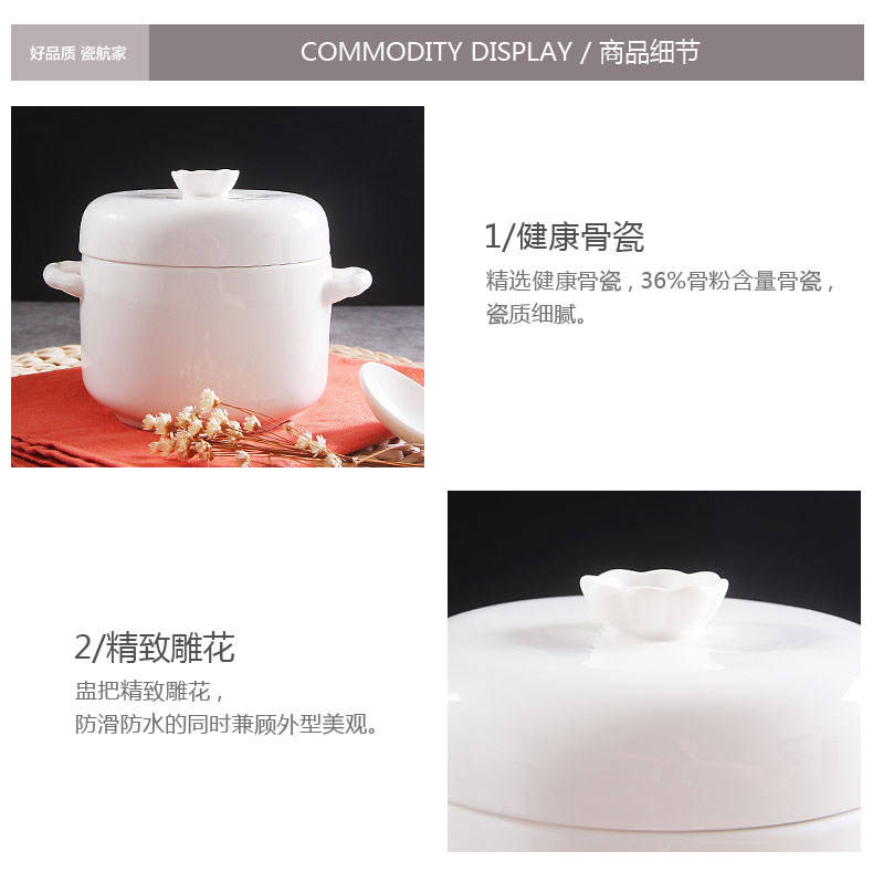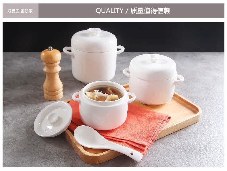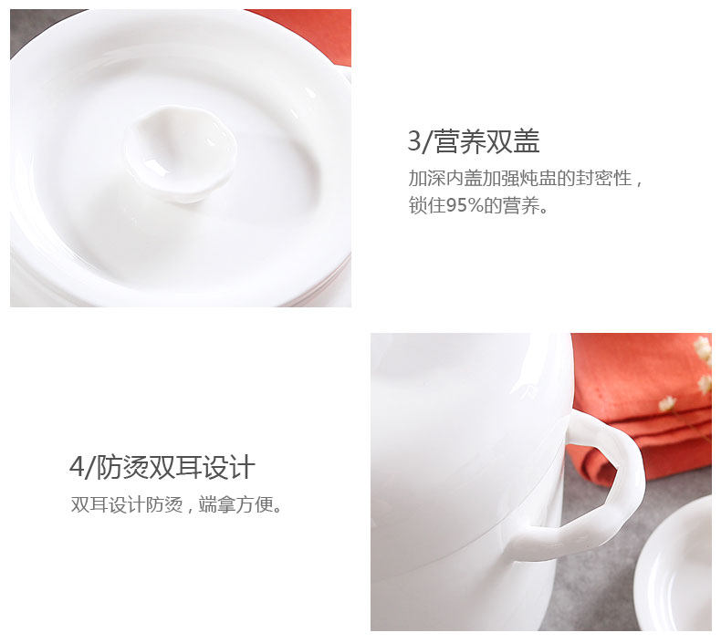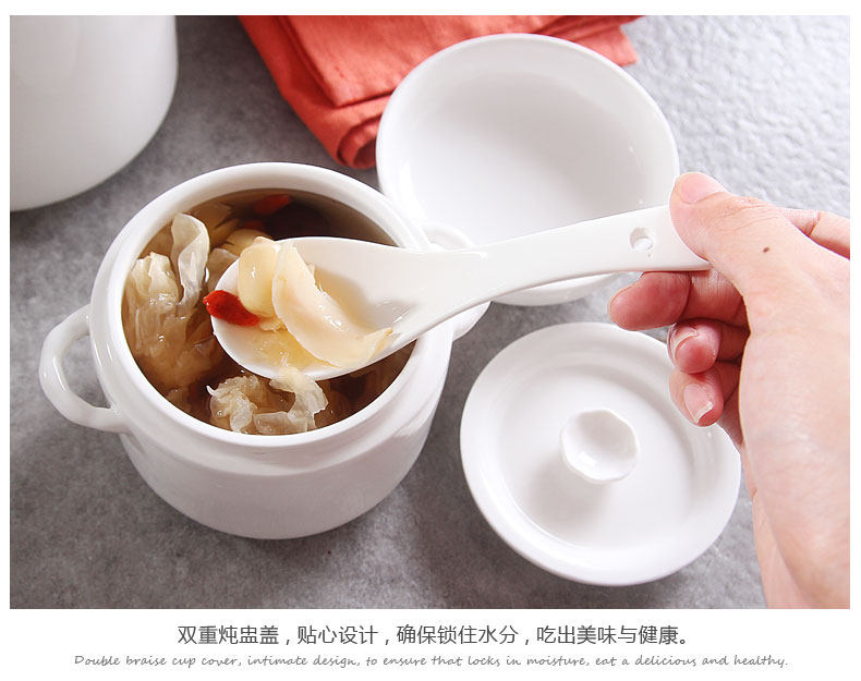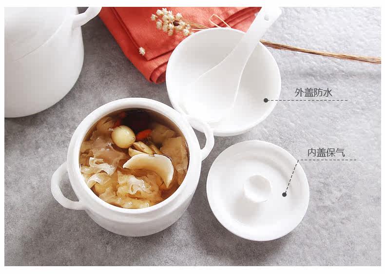陶瓷炖盅双耳双盖炖汤盅煲骨瓷 隔水内胆炖燕窝甜品盅耐高温