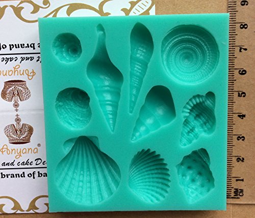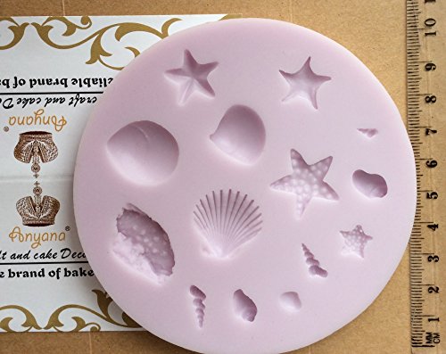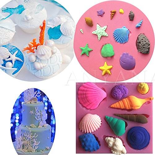Anyana mini Sea Shell Conch scallop starfish mould beach cake Fondant gum paste mold for Sugar paste gumpaste designer cupcake decorating topper decoration sugarcraft decor set of 2