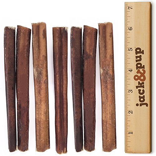 -. Feature : TOP QUALITY & HEALTHY - Jack&Pup Premium Grade Bully sticks are sourced from grass fed, free range cattle; raised without any added hormones or antibiotics, resulting in a healthier and better tasting treat. Processed in a USDA Human Grade Certified and Inspected facility. Each bully stick is handpicked and inspected to ensure quality, texture and perfect consistency. Your canine will enjoy its' delicious and fresh meaty flavor! / 100% DIGESTIBLE & SAFE - Guaranteed to be fully digestible and guaranteed not to cause any side-effects. Jack&Pup Bully Sticks are a natural, low-fat and protein-rich, one-ingredient dog chew treat, being 100% beef muscle without any additives or artificial ingredients. Our careful and natural preparation of the bully sticks effectively eliminates all bacteria and contaminates; making its' consumption fully safe. / SUPPORTS HEALTHY TEETH & GUMS - By ensuring its' consistently perfect texture and thickness, Jack&Pup Bully sticks helps keep the dog's teeth healthy and clean. Effectively removes tartar build-up, strengthens the gums, removes plaque and promotes an overall enhanced oral health. / PERFECT THICKNESS & LONG LASTING - Each Bully Stick is hand selected and sorted to ensure its' consistent thickness. Jack&Pup Bully Sticks are never stretched, resulting in a longer lasting than regular bully sticks. Jack&Pup Bully sticks are extremely safe and will never splinter. Keep your dog occupied for many hours, while chewing away on this savory beefy and flavorful dog treat! / NATURALLY ODOR FREE & FRESH - Jack&Pup Premium Bully Sticks are carefully prepared by boiling, roasting and smoking; then drying in a slow process. The multi-step process effectively locks-in the natural beef flavor resulting in an enhanced richness that dogs love. At the same time, the proP.R.Iety process naturally eliminates all odors, without the use of any additives or chemicals. Stays fresh longer without any added preservatives.