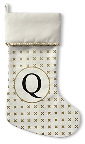 KAVKA Designs Gold Q Christmas Stocking, (Gold/White/Black) - , Size: 12.5x21 - (TELAVC1161CSTC)