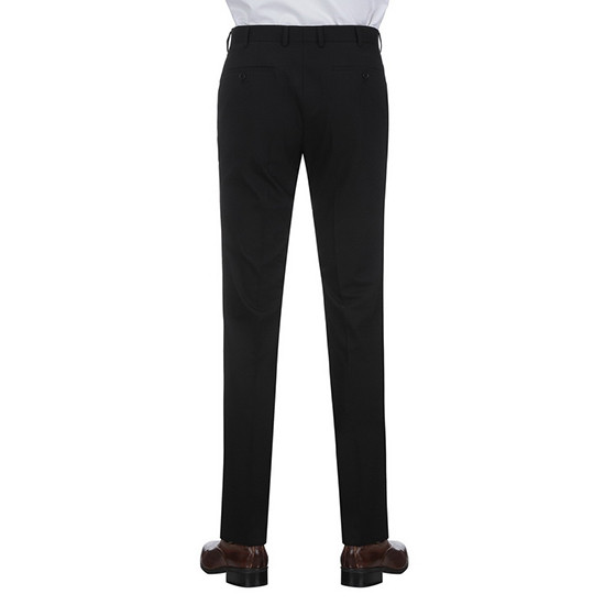 - 블랙 컬러의 미니멀한 남성 수트 팬츠.